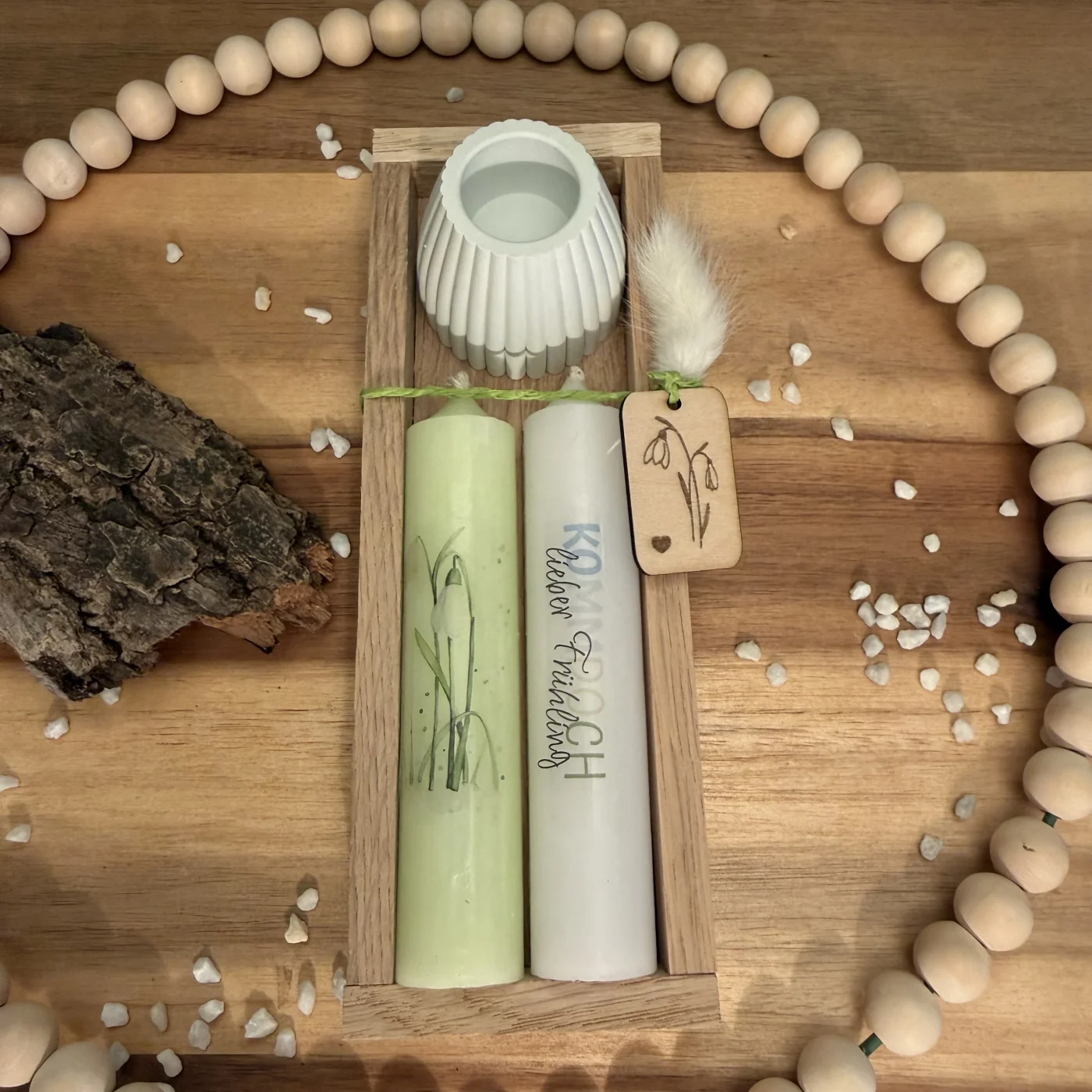 Geschenkset „Kerzen – Frühling Schneeglöckchen“