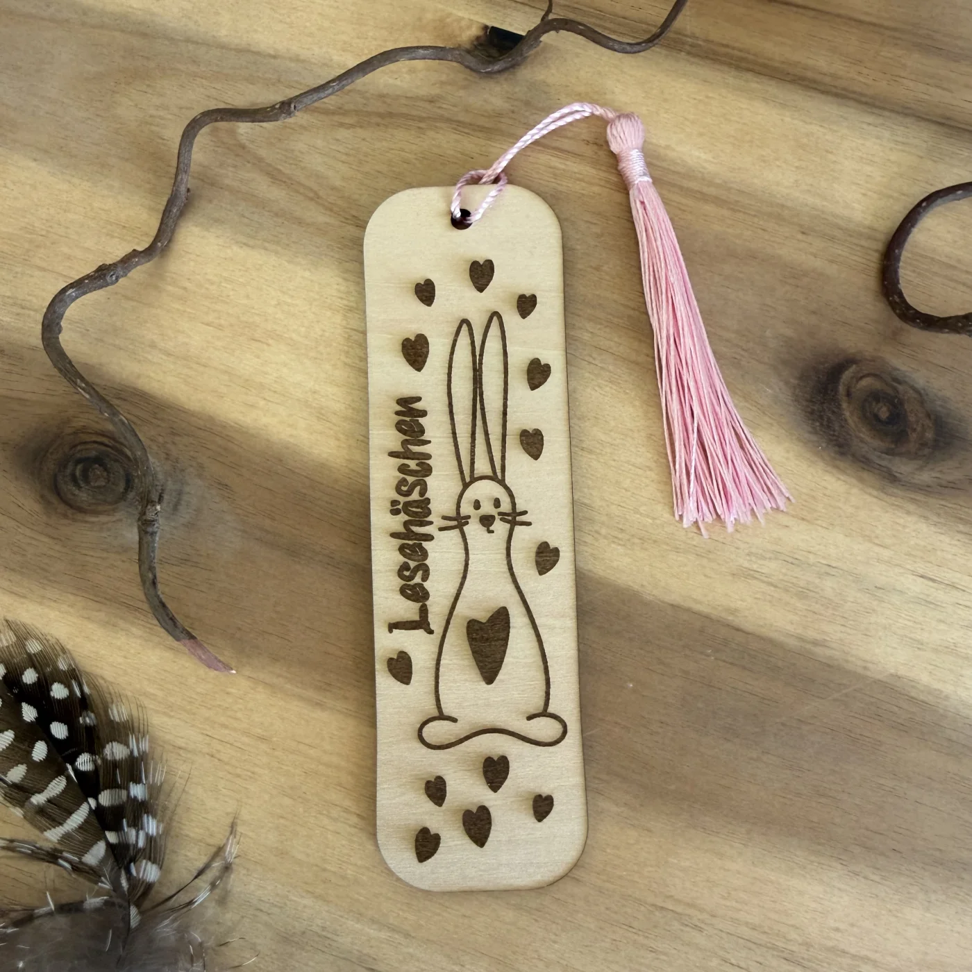 Dieses handgefertigte Holz-Lesezeichen ist perfekt für alle Lesehäschen – nicht nur in der Osterzeit.