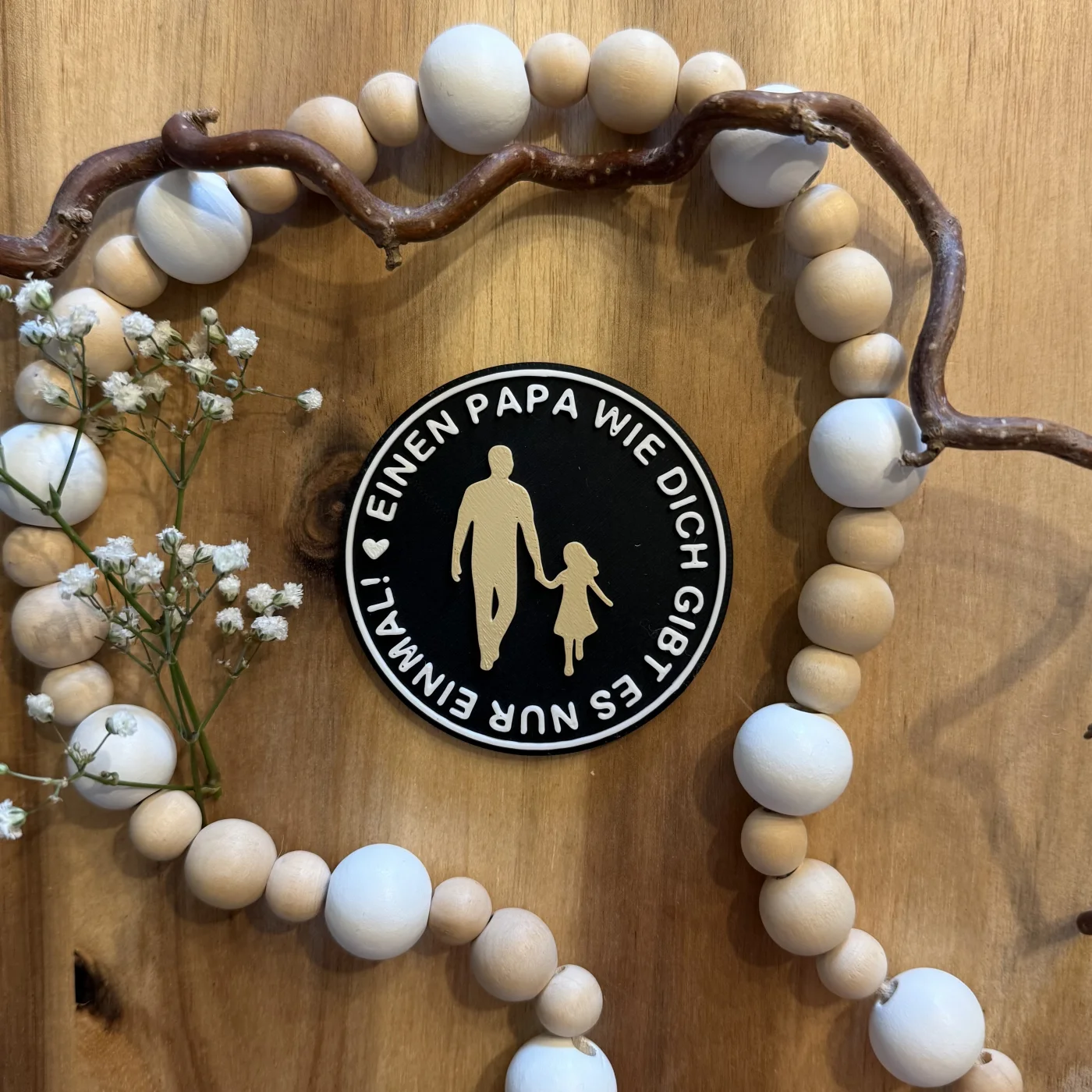Erhältlich ist dieses Produkt in 14 Varianten – für Papas mit einem Kind, zwei Kindern oder drei Kindern – jeweils in allen möglichen Kombinationen mit Mädchen und Jungen. Welchen Spruch magst Du lieber – „Papa, wir haben dich lieb“/“Papa, ich habe dich lieb“ oder „Einen Papa wie dich gibt es nur einmal“? Wähle einfach Deine Wunschvariante aus.